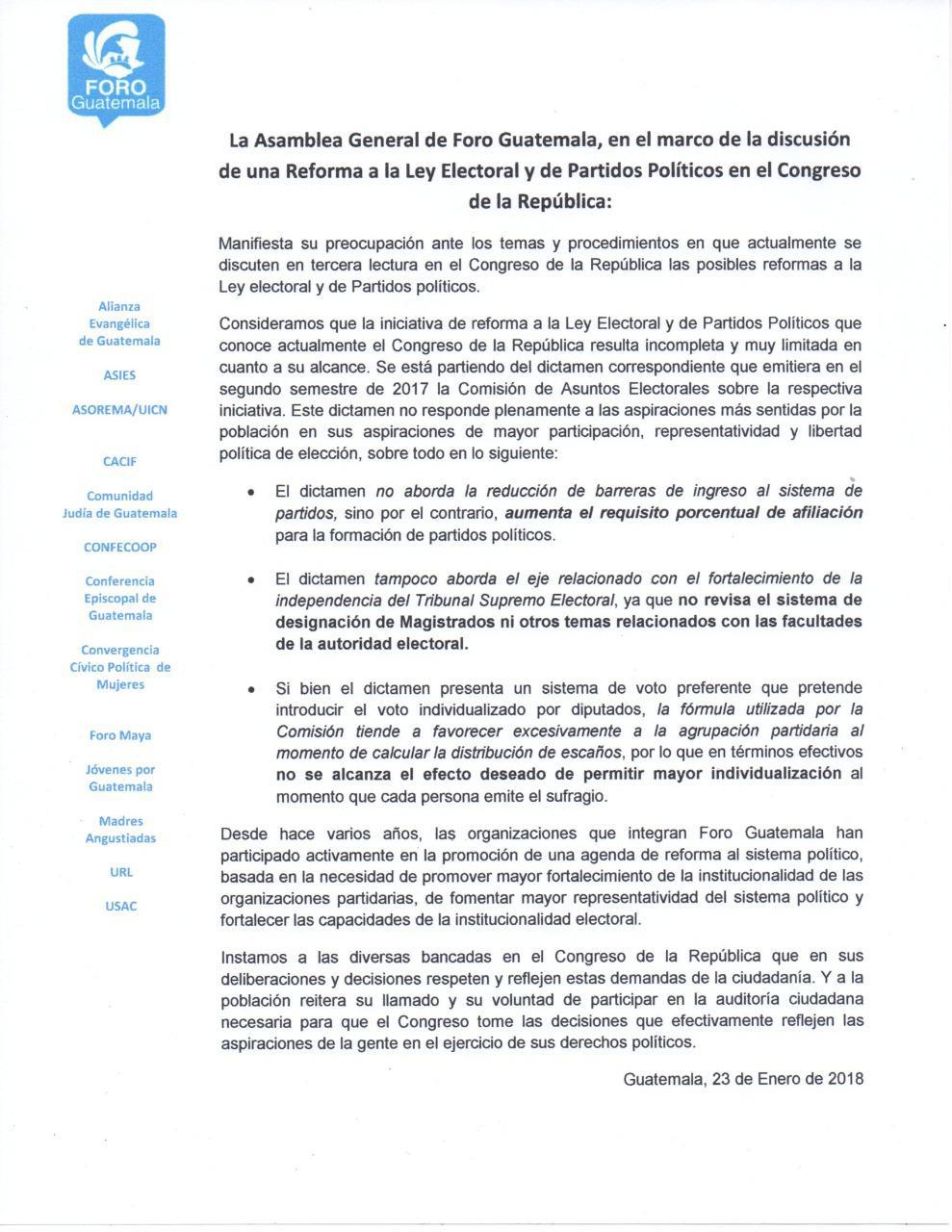 Posicionamiento de Foro Guatemala sobre Reforma Electoral